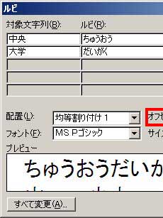 次に、ルビのボタンをクリックし、ダイアログボックスを開きます。