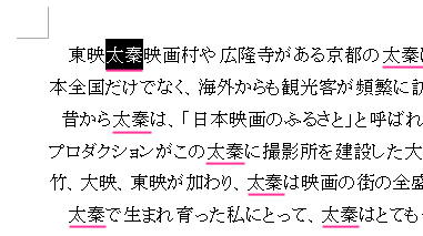 文書中の同じ文字が選択されます。