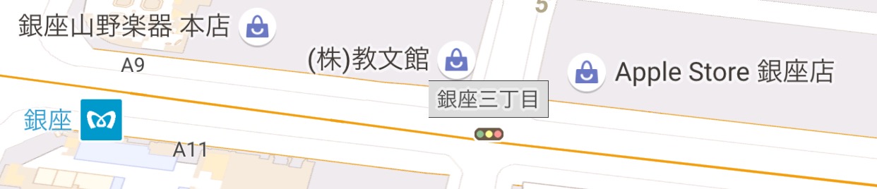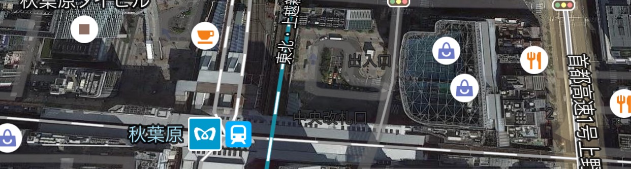 航空写真は、目印にしたい建物を定める時に活用ができる。 平面やただの立体では、周辺の雰囲気が掴めず、 ピンポイントで目的地に行けない場合もあります。 実際の街並みを把握できれば、さらに便利かと思いますので、 目的地付近になったら使用してみてはいかがでしょうか? こちらも黒文字から青文字に変わると画面が切り替わります。