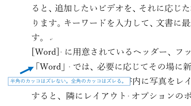 文書の体裁を整えて読みやすくするには、すべてのカギカッコを半角に揃えることをおすすめします。