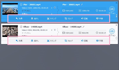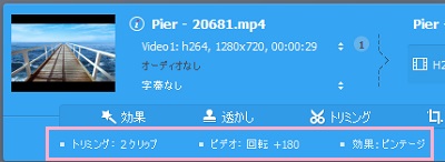 - 結合:動画リストにある動画を結合して一つの動画にします。