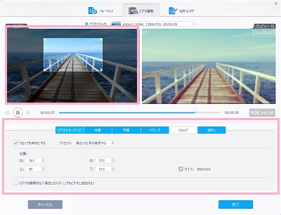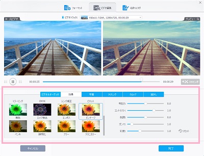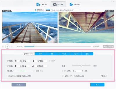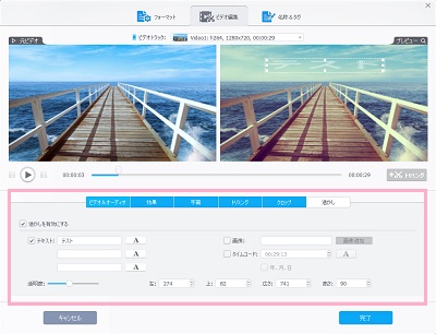 「回転」では、ビデオを左・右へ回転させたり上下反転・左右反転を行うことができます。また「字幕」では字幕ファイルを追加することで、動画に字幕を挿入することが可能になります。