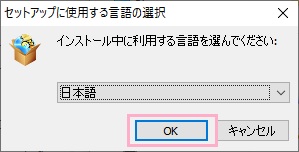 ダウンロードした「winx-dvd-ripper-pt.exe」を起動すると、セットアップウィザード起動の前に「セットアップに使用する言語の選択」が表示されます。言語が「日本語」になっていることを確認して「OK」をクリックして進めましょう。