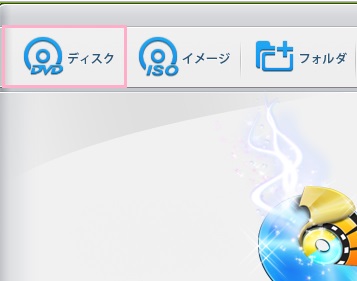 光学ドライブにDVDを挿入したら、ウィンドウ上部の「DVDディスク」をクリックしましょう。もしリッピングしたいDVDをイメージ化しているのであれば、「ISOイメージ」から開くことができます。