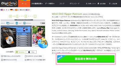 WinX DVD Ripper Platinumは下記リンク先の公式ページからダウンロードすることができます。「製品版を無料体験」ボタンをクリックすることでインストーラーをダウンロードしてみましょう。