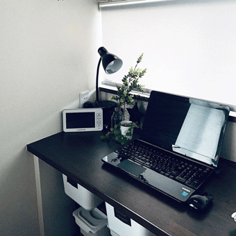 手作り感がかわいいデスク周りです。