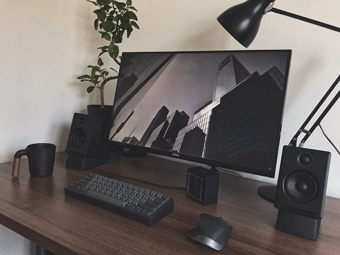 カラーをシンプルでまとめる、あるいは間接照明を使用すると、同じPCやデスクでも違った印象にできます。
