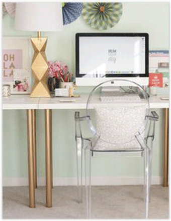 透明のガラスでできたデスク、またはイスは、おしゃれにするのにポイントが高いです。
