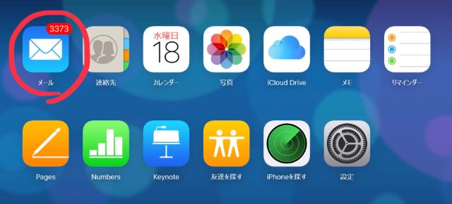 iCloud内のいろいろな機能が一覧になっていますので、その中から『メール』選びクリックします。