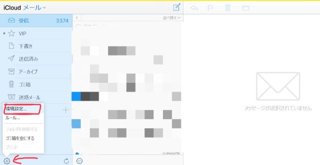 メールの画面を開いたら、左下にある歯車のようなところをクリックします。