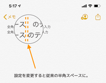 このように、iPhoneで日本語ひらがな入力では、以前から半角スペースも入力できました。