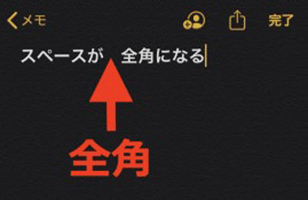 iOS13になったiPhoneでスペースを入力すると、全角モードでは全角のスペースが自動で入力されます。