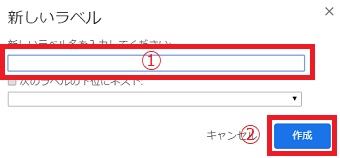 「新しいラベル名を入力してください」の所に親フォルダの名前を入力します。入力が終わったら「作成」をクリックしてください。