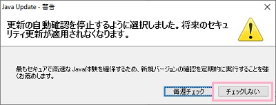 jusched.exeを停止させている場合はJavaのアップデートがあるかどうかの自動確認行われなくなるので、手動でJavaの更新があるかどうかの確認・アップデート実行を行う必要性が出てきます。
