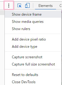 ブラウザウィンドウ右上のメニューボタンをクリックして「Show device frame」をクリックしましょう。