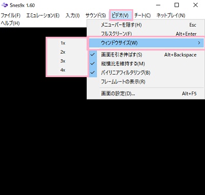 Snes9xで画面サイズを設定する