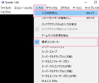 Snes9xでコントローラーを設定する