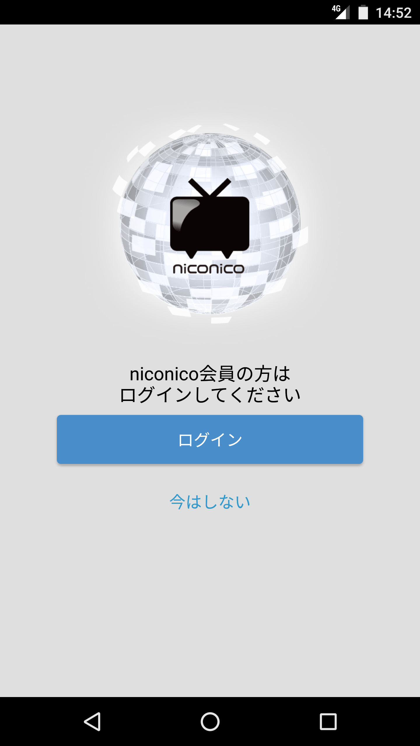 インストールが完了したらまず最初にログイン画面が出てきます。ニコニコ動画のアカウントを既にお持ちの方は、「ログイン」をタップするとメールアドレスやパスワードの入力画面が出てきますので、そちらからログインしましょう。