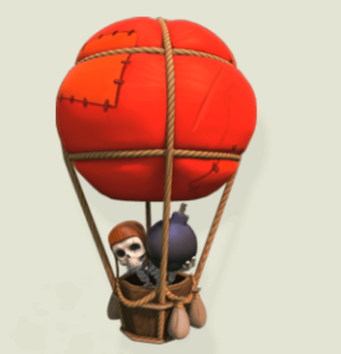 これまでのタウンホールレベルでは基本空のユニットを使って攻めることはできませんでした。タウンホールレベル4からエアーバルーンが利用できるようになり、空からの攻めが可能になります。更にエアーバルーンは攻撃速度、移動速度は遅いですが、攻撃力は高いので一発一発にかなりの威力があります! 空のユニットはなんといっても大砲など対地上の防衛施設の攻撃を受けないところにあります。対大砲でいうと、エアーバルーンはノーダメージで大砲を破壊できます。 一方でアーチャータワーなど対空でも攻撃できる施設には通常の地上のユニットと同じく攻撃をうけます。しかしながら防衛される施設が限られることが空ユニットの最大の特徴になります。