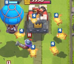 インフェルノタワーはラヴァに一番効くカードです。ラヴァはHPがとても高いので、インフェルノタワーで焼くのが一番早く迎撃できます。