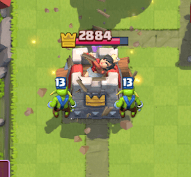 地上のユニットに対して広い範囲のダメージと押し戻す効果があります。 コスト2ということもあり使い勝手のいいカードで、同じくコスト2の呪文「ザップ」の代用として使っている人もいるかと思います。