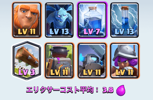 ジャイアントを盾に攻めるオーソドックスなデッキとなっています。