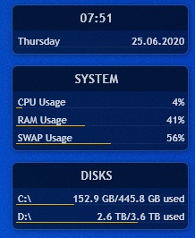 Rainmeterでは、デフォルトのテーマである「illustro」以外にもテーマをダウンロードして様々なデザインや項目のガジェットを利用することができますよ。