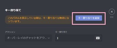 プッシュトゥトークに使用するキーですが、Discordのウィンドウが非アクティブでも入力を受け付けるので全く使わないキーを設定するか、同時押し入力を設定しておくことをおすすめします。