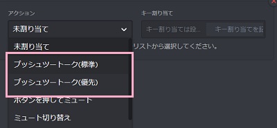 メインで使うショートカットキーをプッシュツートーク(優先)に、サブで使うショートカットキーを(標準)で設定することをおすすめします。