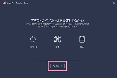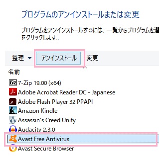 他のアプリケーションを導入したときに一緒にAvastがインストールされてしまったというケースでは、Avastが不要なユーザーがほとんどだと思います。この場合は、Avastをアンインストールしましょう。