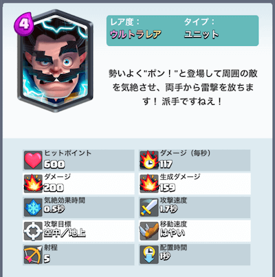 エレクトロウィザードの基本ステータス情報です。