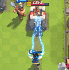 そのためライトニングでは1発で倒せます。ただしエレクトロウィザード1体に対してライトニングを打つとエリクサー的には赤字のため他の敵ユニット・タワーを巻き込むようにしましょう!
