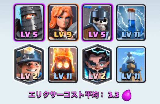 その点ナイトやミニペッカなどは単体ユニットのためエレクトロウィザードを倒すのには有効なカードの1つとなります。