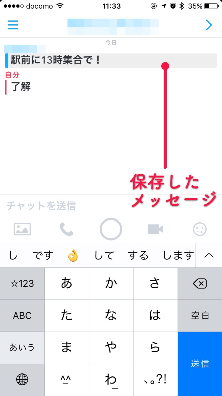 ただし、こちらが保存したメッセージは相手のチャット画面上でも自動的に保存され、知られるということもおぼえておきましょう。
