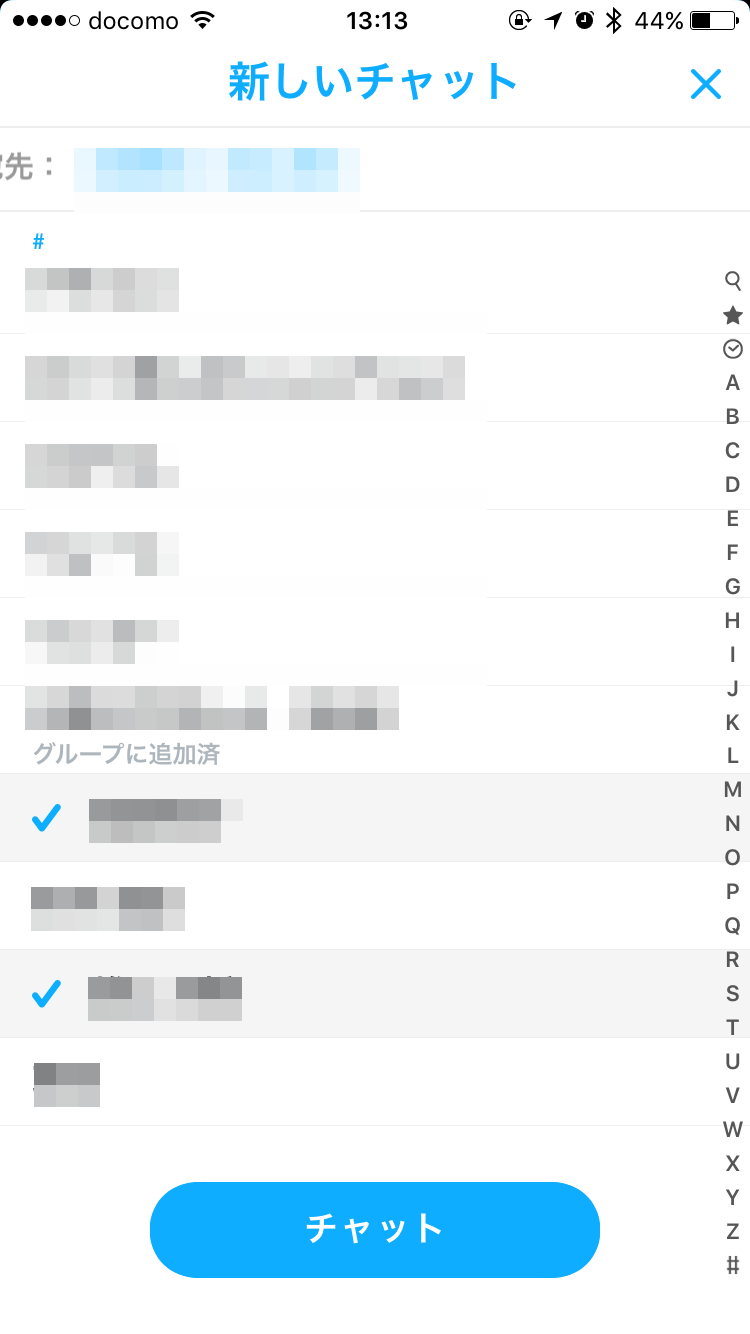 チャットは、画面上に表示されている最近チャットをした人の名前をタップまたはスライドするか、画面右上のフレンドリストから相手を選んで、開始します。