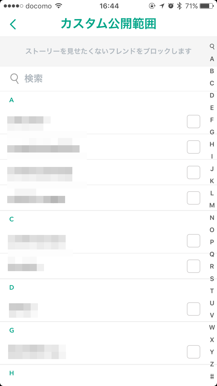 「カスタム」では、ストーリーを見せたくないフレンドを決めることができます。