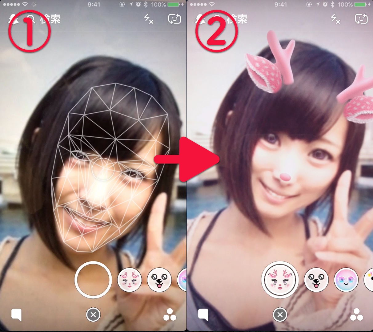 指示通りのアクションをすると、さらに面白い効果がかかるので、ぜひ試してみてください。
