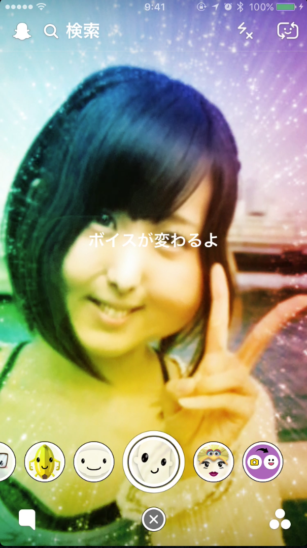 左の写真のように「ボイスが変わるよ」と表示されるレンズで動画を録ると、声にエフェクトが付いたりもします!