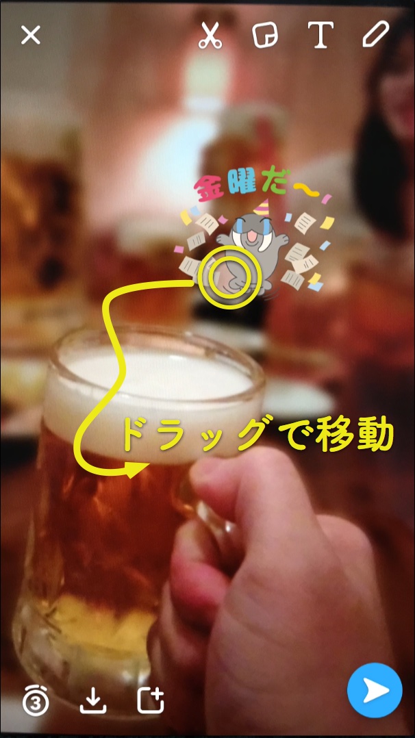 画面上に置いたスタンプは、ドラッグすることであとから何度でも場所を移動させられます。
