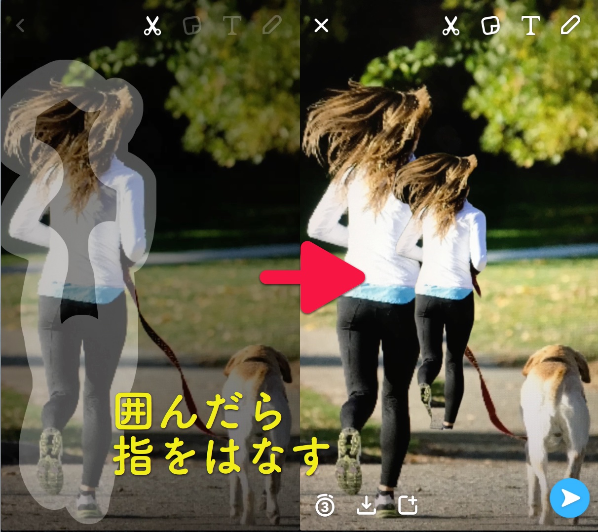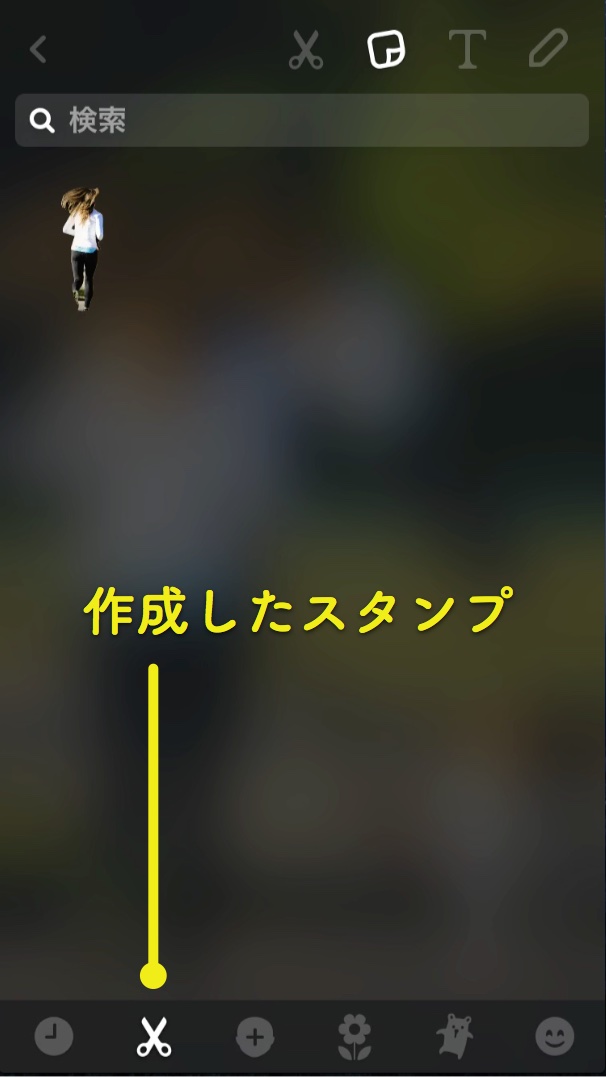 オブジェクトを囲み終わったら、ドラッグしていた指をはなします。 すると画面上に、囲んだオブジェクトがスタンプとなって表示されます!