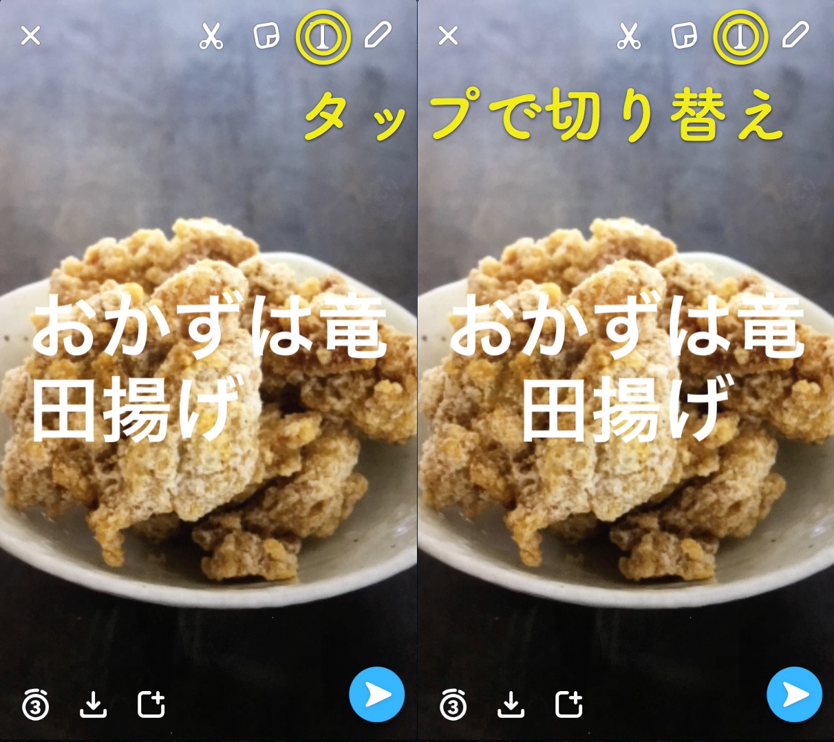 撮影した後も、画面をスワイプしたり、画面右上のボタンをタッチすることで、さまざまな編集を行えます。 主な機能は以下の通りです。
