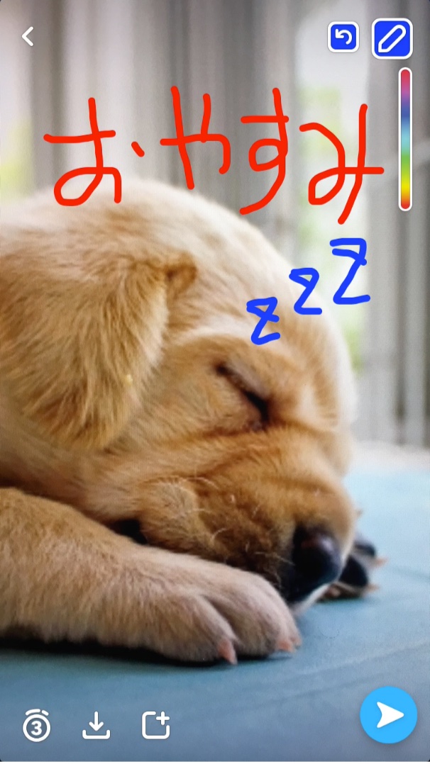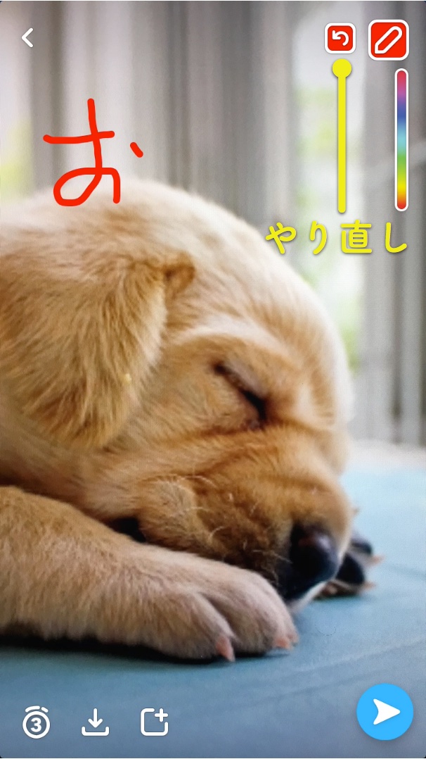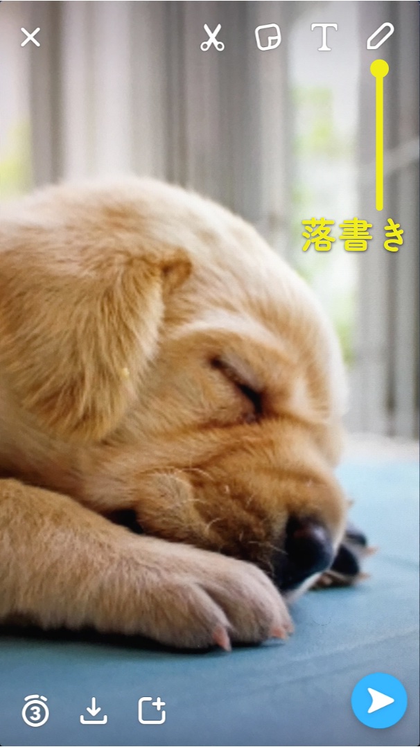 最後に、落書きのやり方です。 左の写真で指しているペンのアイコンをタップしてください。