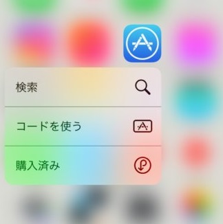 iPhoneのホーム画面でアプリのアイコンを強く押すことでメニューが表示される機能です。 例えるならWindowsPCでの右クリックといったところでしょうか。 ※3DTouchはiPhone6以前のもの、iPhoneSE/5等には対応していませんのでご注意ください。