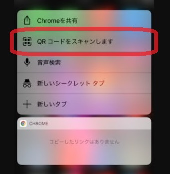 『QRコードをスキャンします』 をタップ。 すぐにGoogleChromeが起動しQRコード読み取り画面に切り替わるので、そのまま読み取ります。