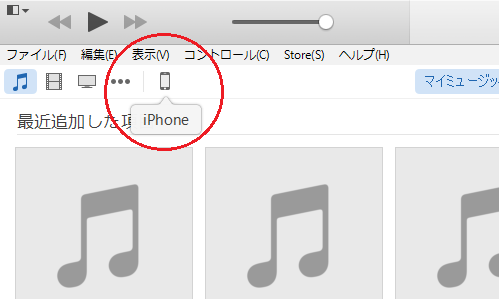 iTunesの画面左上にiPhoneのマークが表示されるので、それをクリックします。