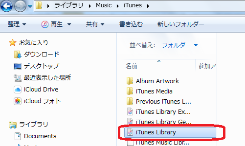 ライブラリ→ミュージック→iTunes →iTunes Library を選択すると…