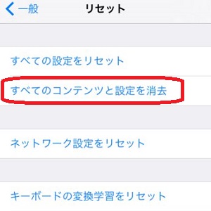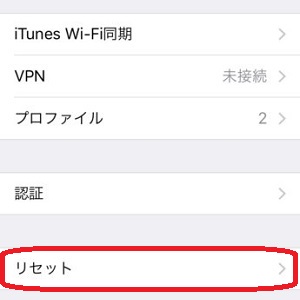 一番下までスクロールして『リセット』をタップします。 ここをタップしたからといって、すぐに全てのデータがリセットされるわけではありませんのでご安心ください。