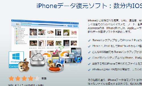 3つの復元モードを搭載 ・直接iOSデバイス本体から復元 ・iTunesバックアップファイルから復元 ・iCloudバックアップファイルから復元 Windows版/Mac版とも無料でダウンロードができます。