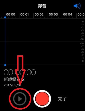 今録音したばかりのボイスメモを再生するときには、録音ボタン左側の再生ボタンをタップします。