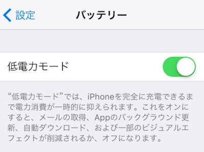 電池が20%を切ると出て来る「低電力モード」は「設定アプリ」から常にONにすることができます。低電力モードをオンにすることで電力消費が抑えられますが、一部機能が使えなくなるので注意が必要です。